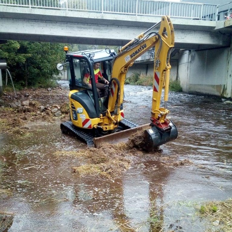 Dazu gehören unter anderem Arbeiten an Wasserkraftwerken, das Anlegen und Instandhalten von Waldwegen, der Bau von Steinmauern und Habitaten sowie die Herstellung und Gestaltung natürlicher Bachläufe. Auch Pegelmessanlagen reinigen und halten wir zuverlässig frei.